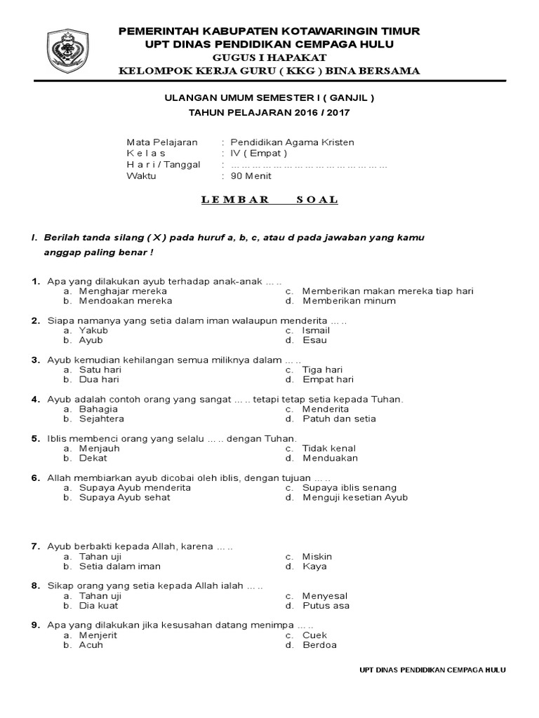 Kisi-Kisi Soal Agama Kristen Kelas 4 : Soal Ulangan Pendidikan Agama Kristen Kelas Iv : Maybe you would like to learn more about one of these?